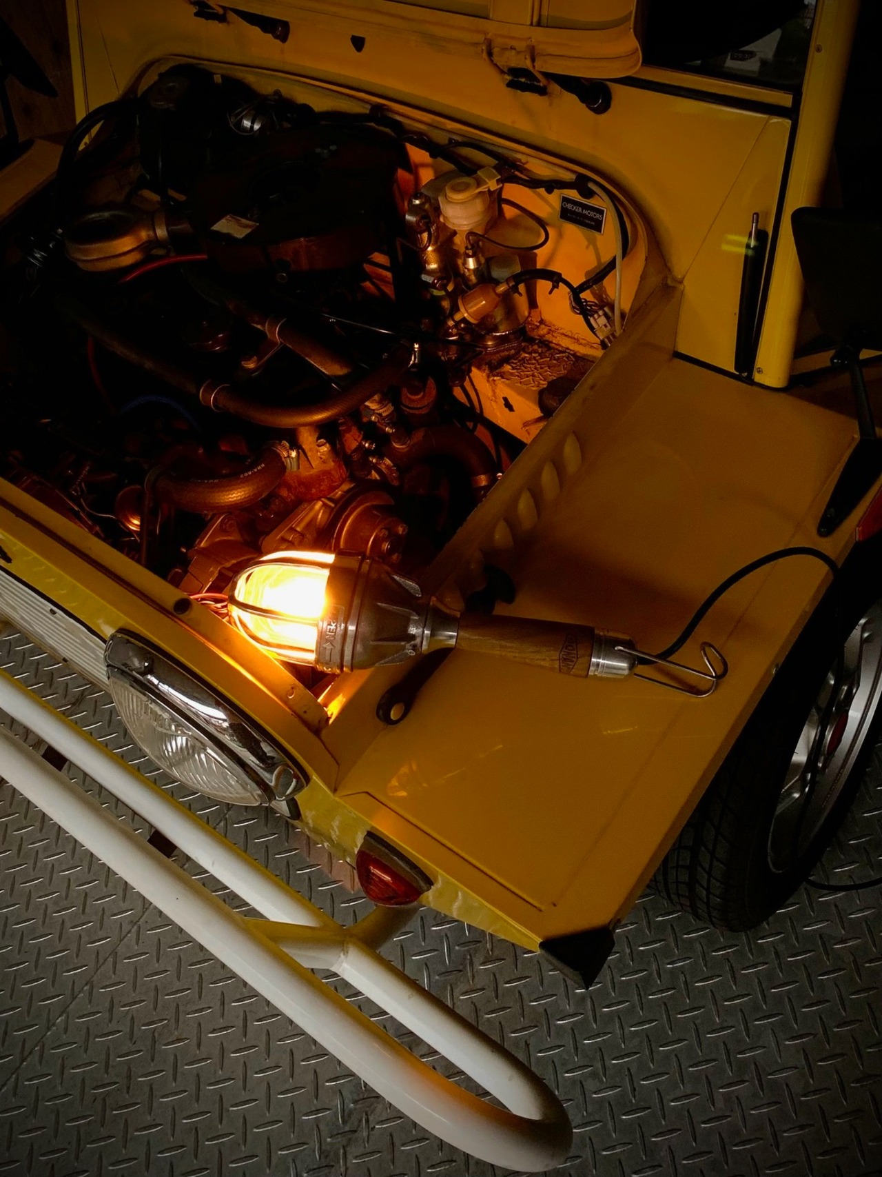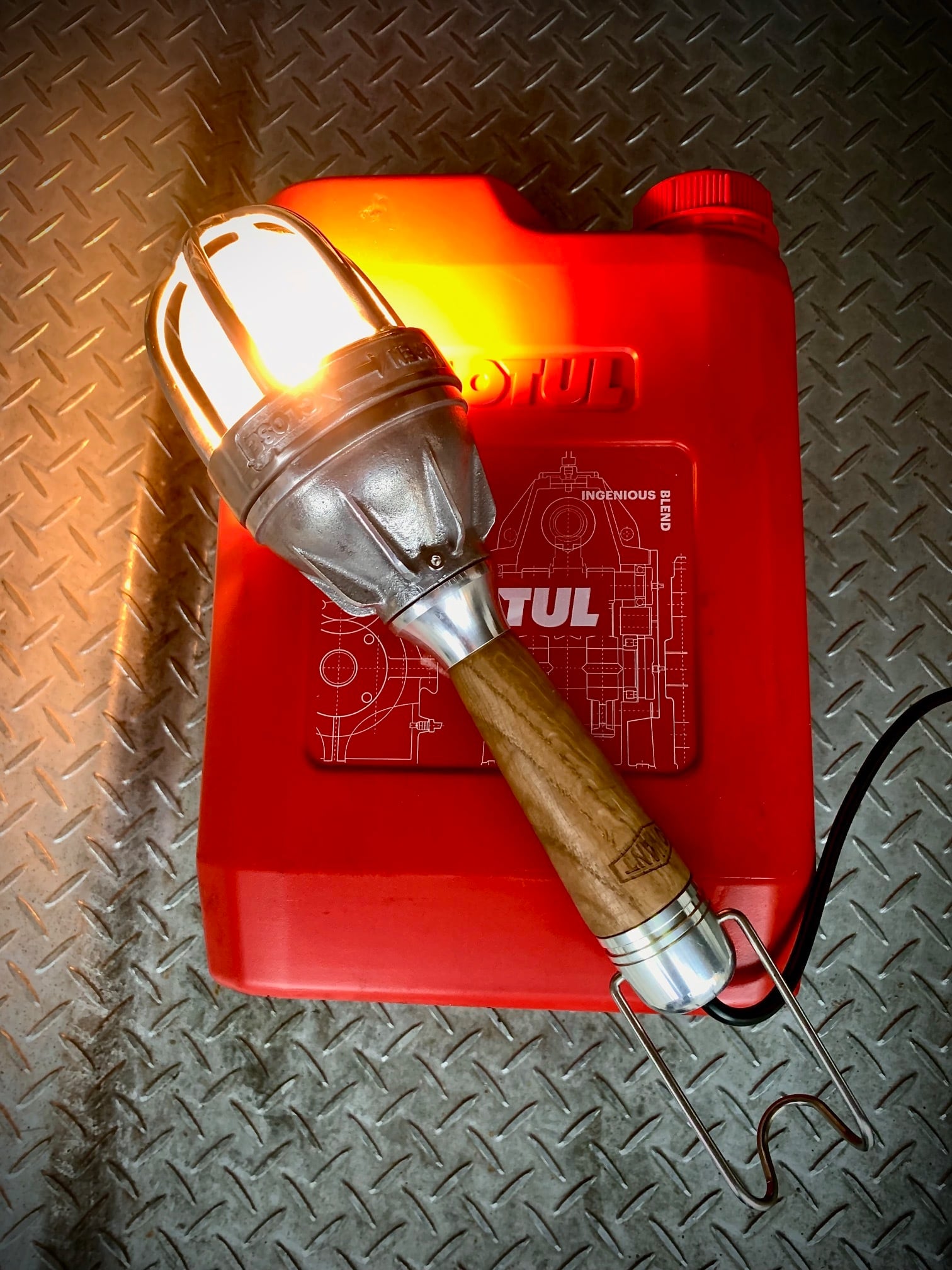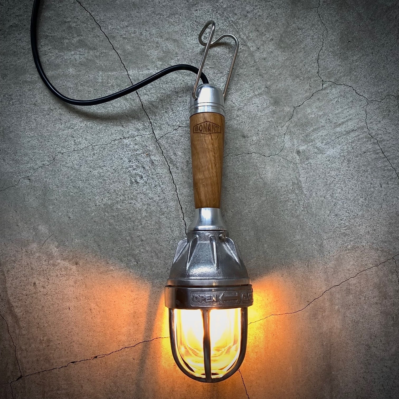 重量1.35kgと重量があり、それ程の明るさも有りませんので実用的とは言えませんが、ガレージの雰囲気を演出してくれる存在になる照明に仕上がりました。
